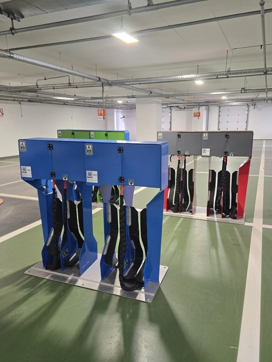 Yes. Velovoute provides a controlled charging environment with separated compartments for each bike, reducing risks associated with e-bike batteries. This is particularly important for indoor installations where fire safety is a critical consideration.